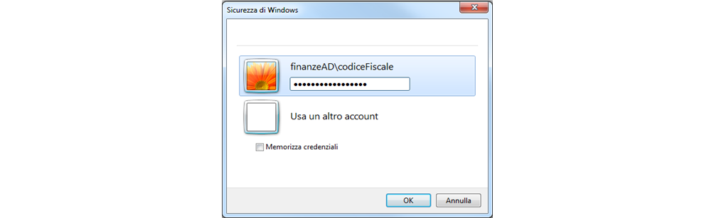 - inserimento del codice fiscale nella casella contrassegnata come Nome Utente;