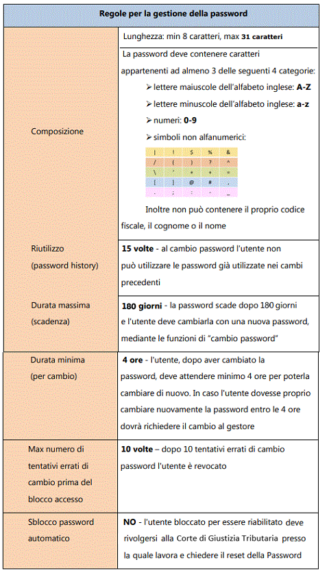 - Cambiare la password, impostando la nuova secondo le regole di composizione indicate nel prospetto "Regole per la gestione della password".